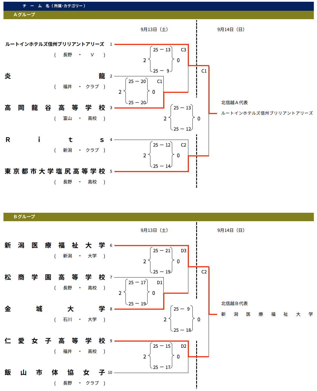 | Rits (新潟/クラブ) | 0 | 12-25 14-25 | 2 | 東京都市大学塩尻高校 (長野/高校) |
