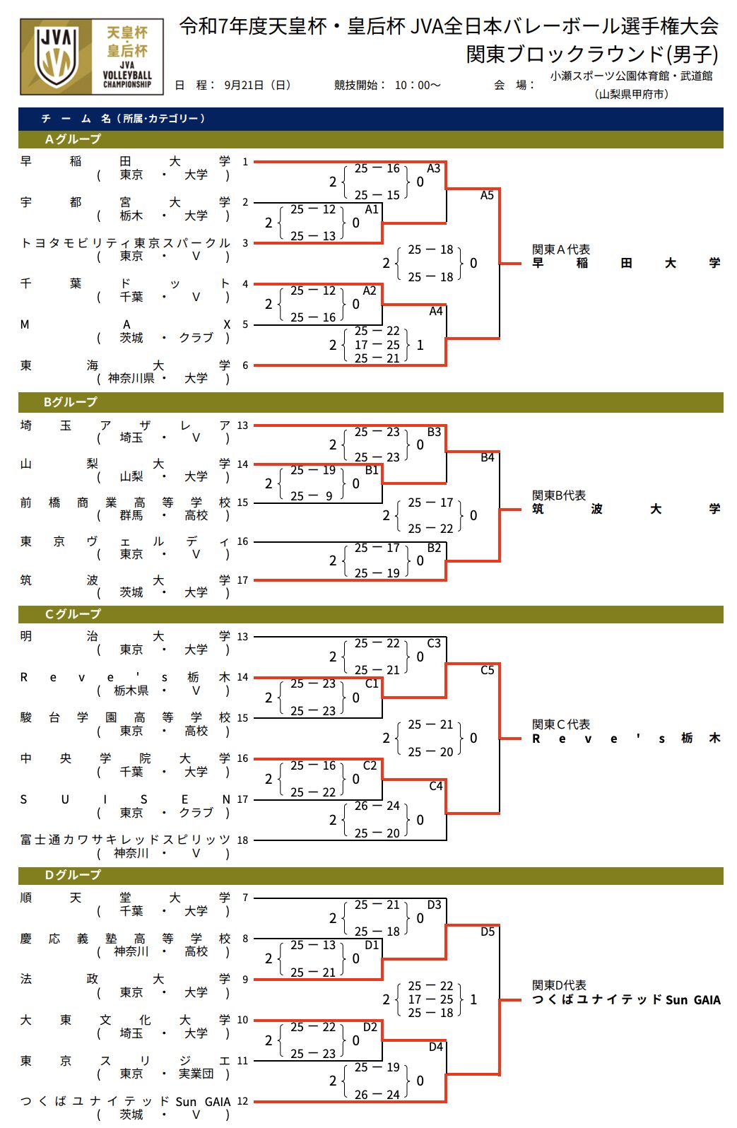 | 東海大学 (神奈川/大学) | 2 | 26-24 23-25 25-23 | 1 | 筑波大学 (茨城/大学) |