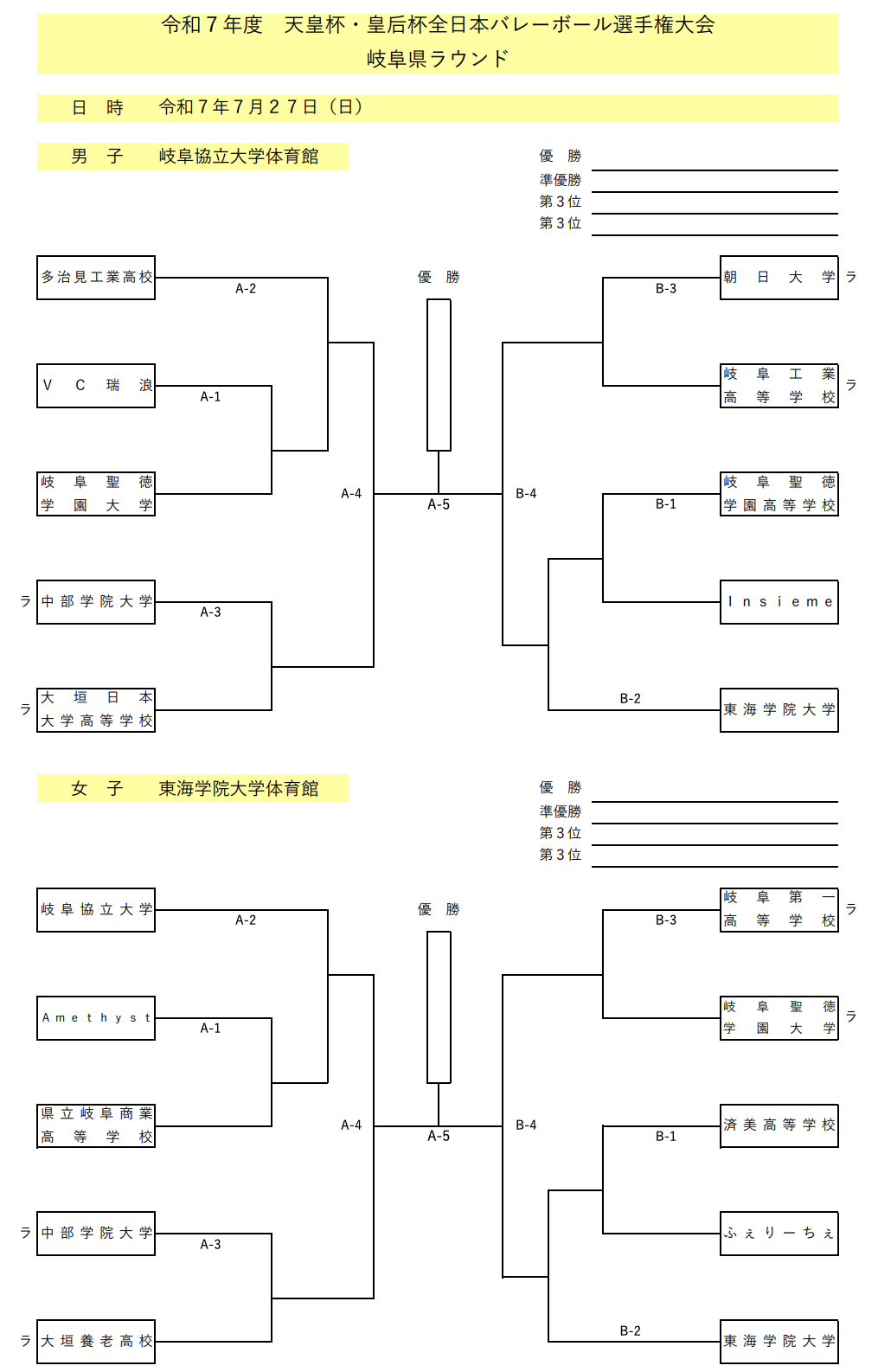 岐阜県で『2025天皇杯・皇后杯 全日本バレーボール選手権大会 都道府県ラウンド』の男女試合が始まります。
