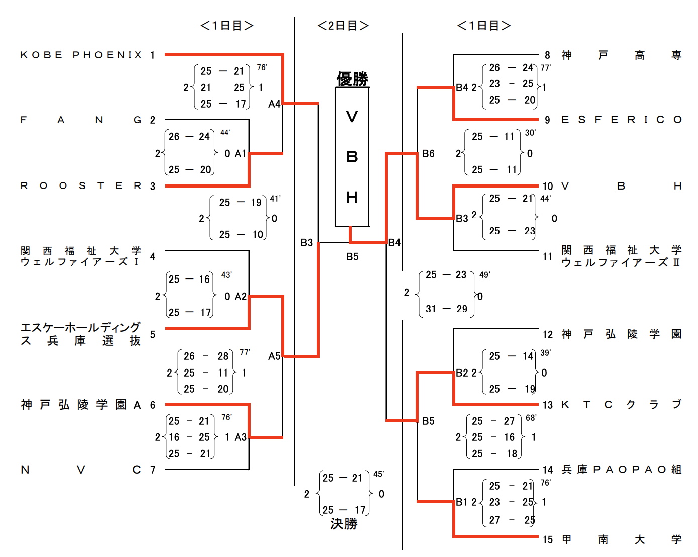 男子VBH、女子は神戸親和大学でした。
