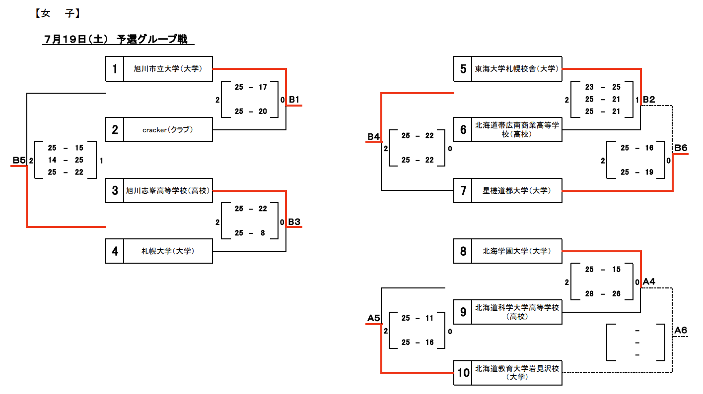 | 旭川市立大学 | 2 | 25-16 25-19 | 0 | 北海道教育大学岩見沢校 |