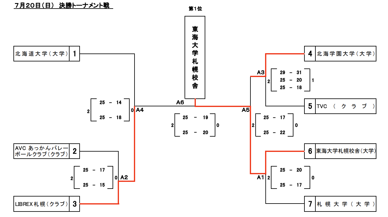 | 北海学園大学 | 0 | 17-25 22-25 | 2 | 東海大学札幌校舎 |