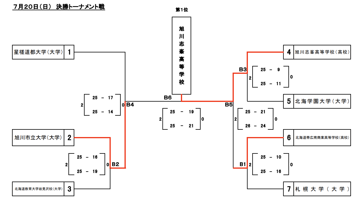 | 旭川志峯高校 | 2 | 25-9 25-11 | 0 | 北海学園大学 |