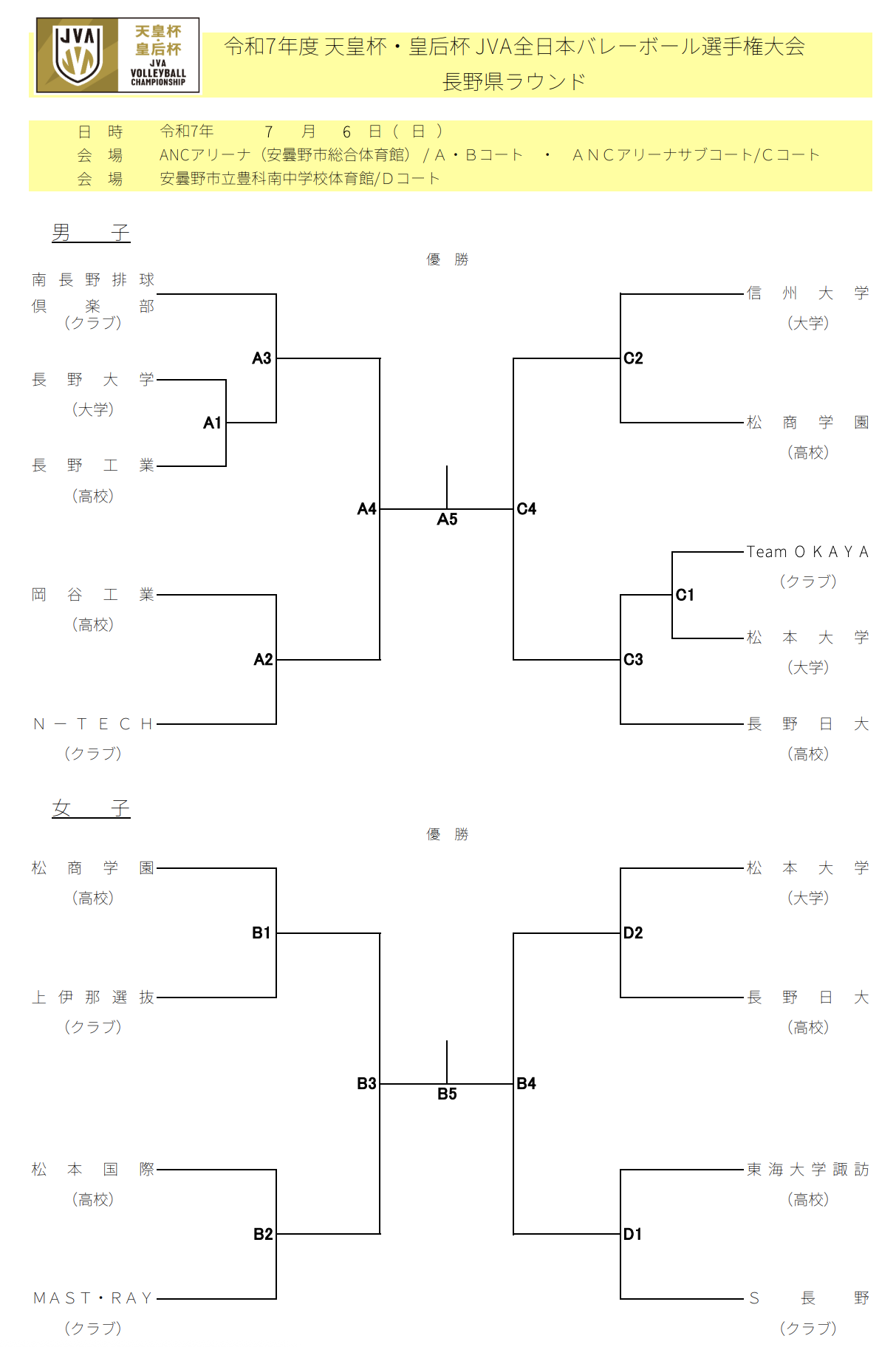 長野県で『2025天皇杯・皇后杯 全日本バレーボール選手権大会 都道府県ラウンド』の男女試合が始まります。