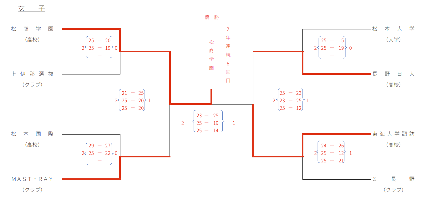 松商学園高校 | 0 | 15-25 24-26 | 2 | 長野日大高校 |