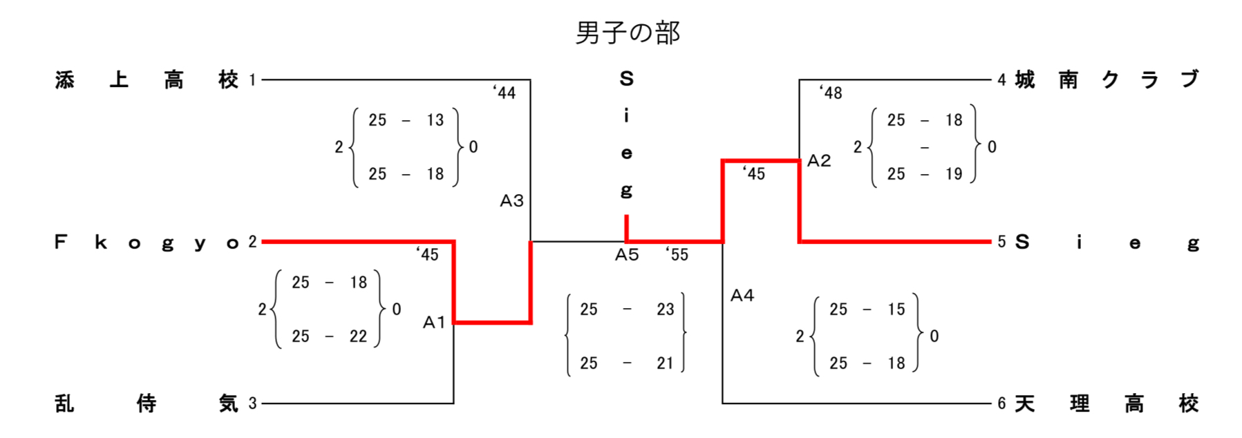 | 添上高校 | 0 | 13-25 18-25 | 2 | Fkogyo |