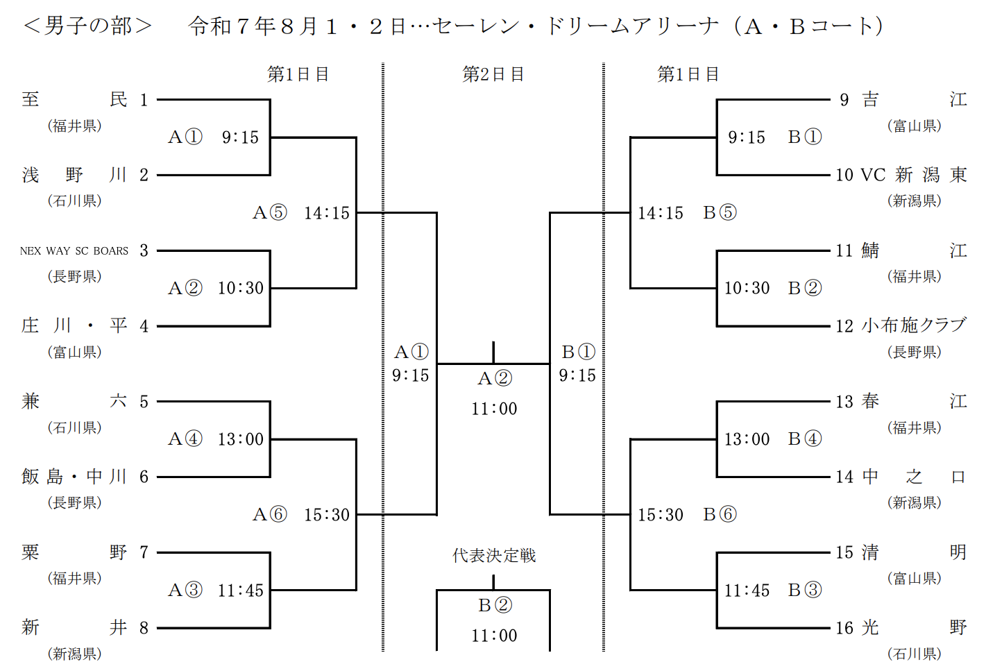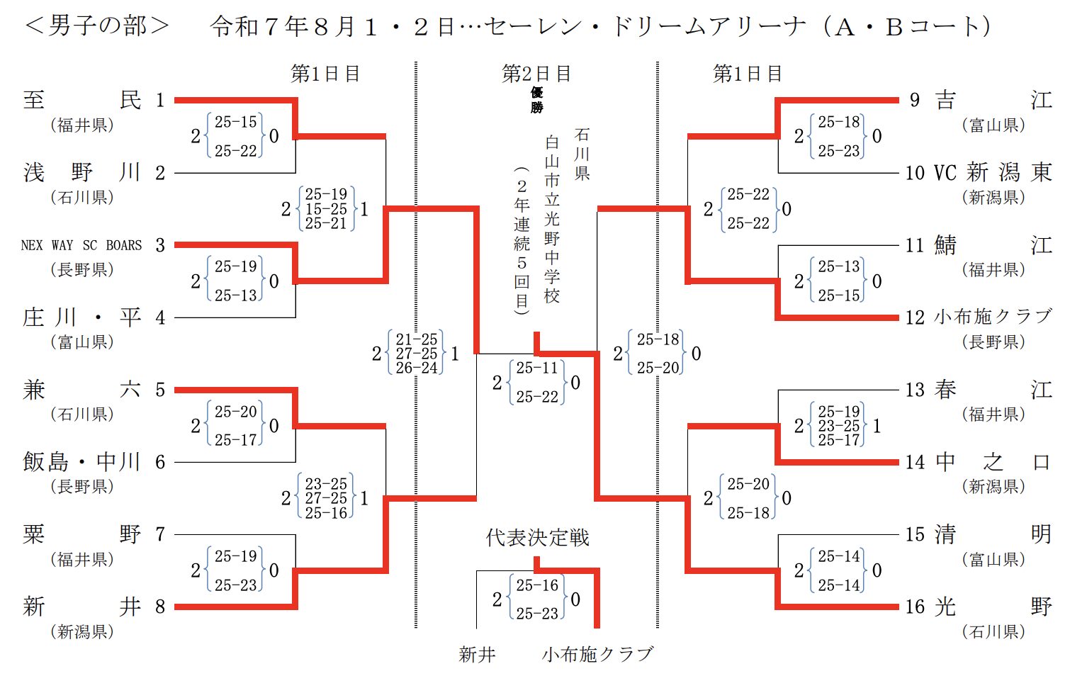 | 至 民 (福井1位) | 2 | 25-15 25-22 | 0 | 浅野川 (石川3位) |