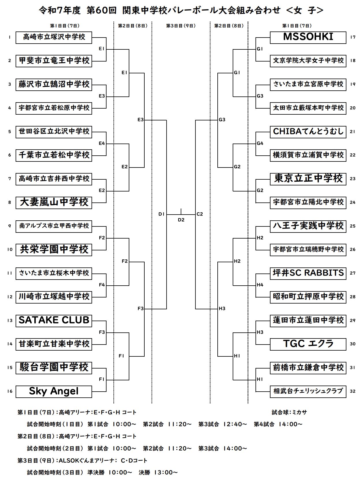 群馬県で開催されていました『令和7年度 第60回関東中学校バレーボール大会』女子の全ての試合が終了しました。
