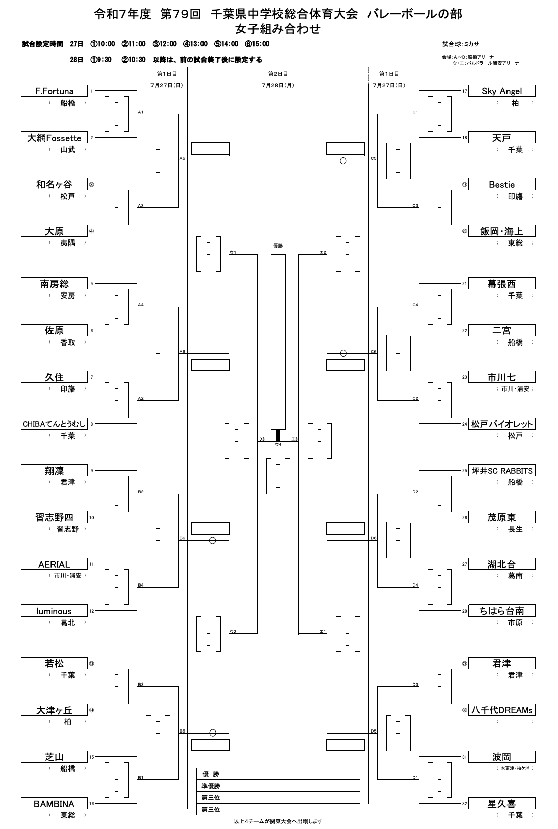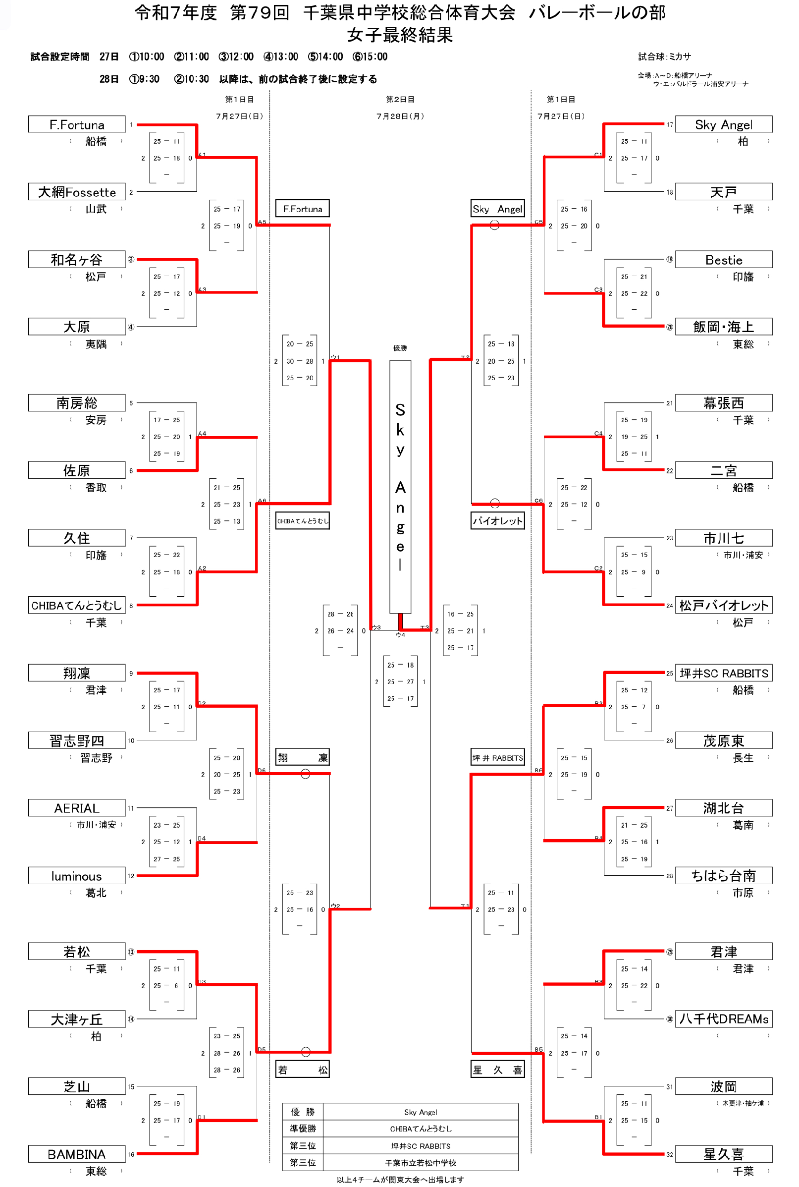 | 坪井SC RABBITS | 2 | 25-12 25-7 | 0 | 茂原東 |