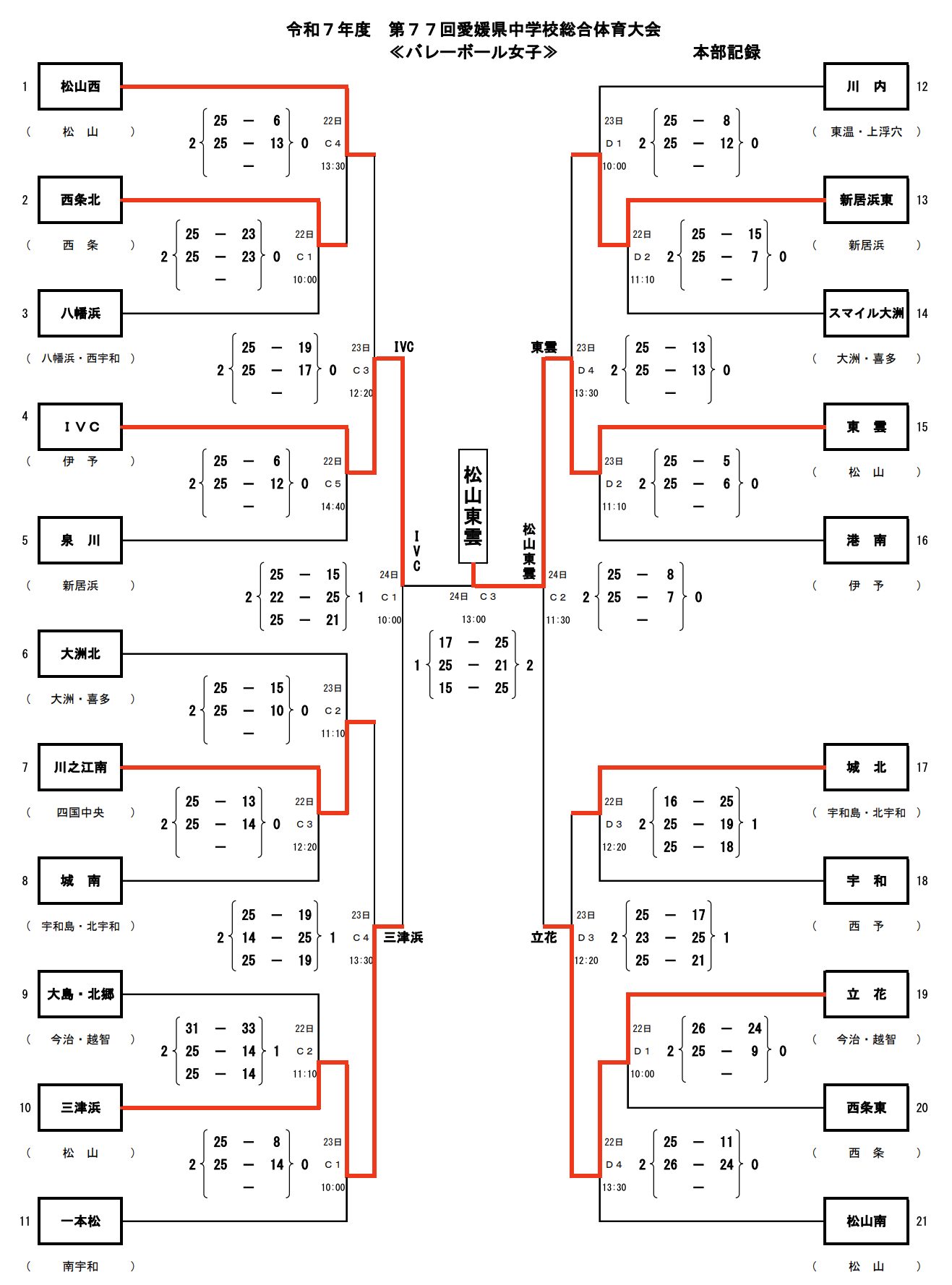 | 松山西 | 2 | 25-6 25-13 | 0 | 西条北 |