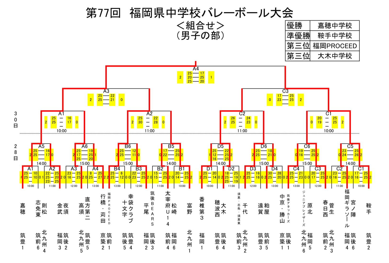 福岡 2025全中バレー|第55回全日本中学校バレーボール選手権大会県予選 男子結果