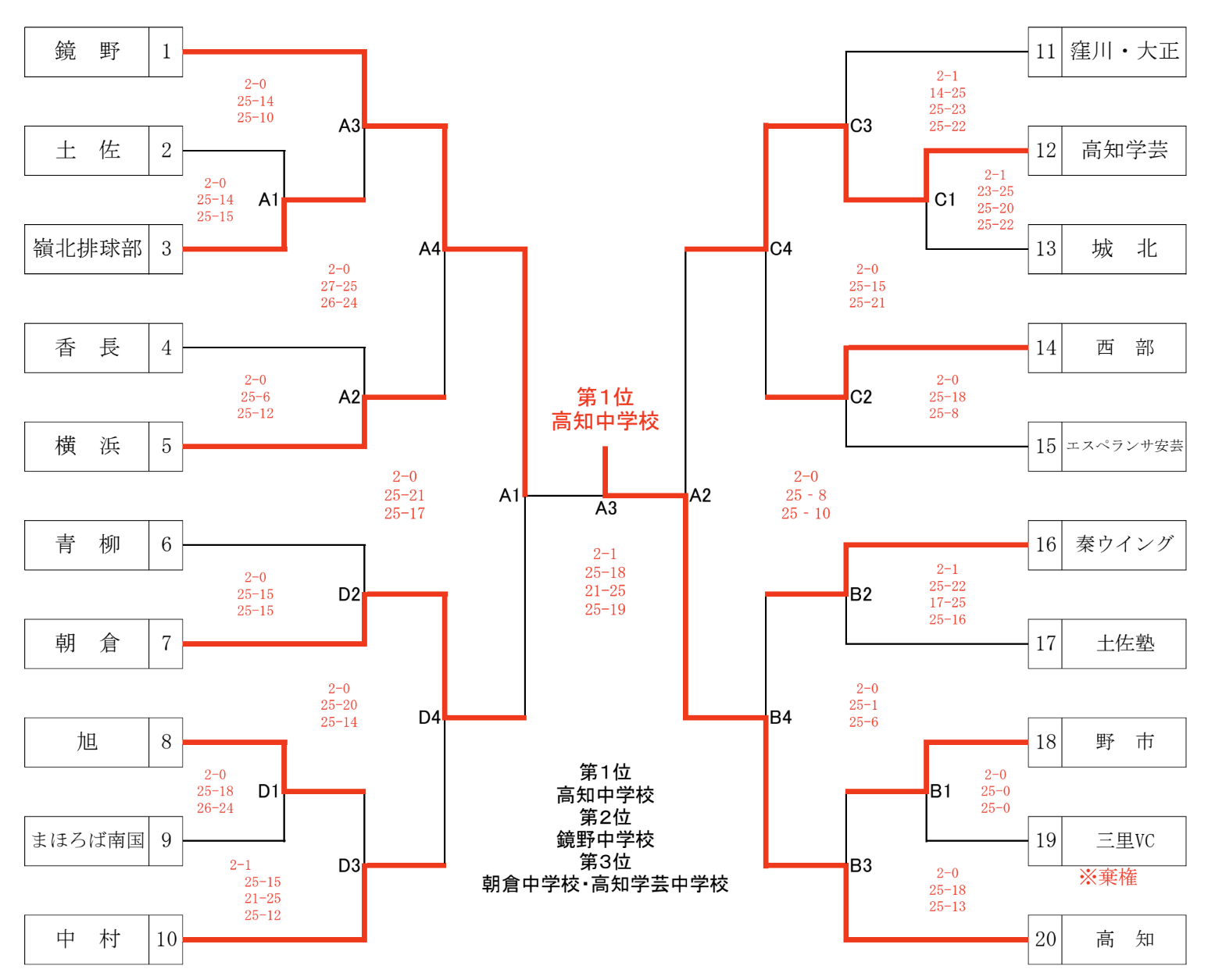高知 2025全中バレー|第55回全日本中学校バレーボール選手権大会県予選 男子結果