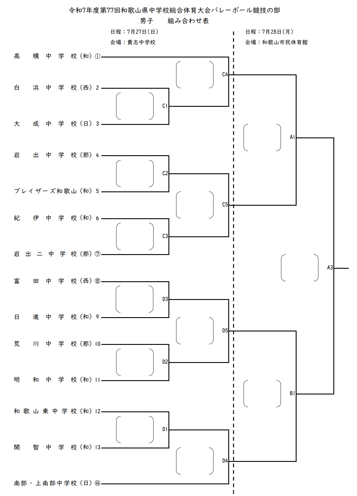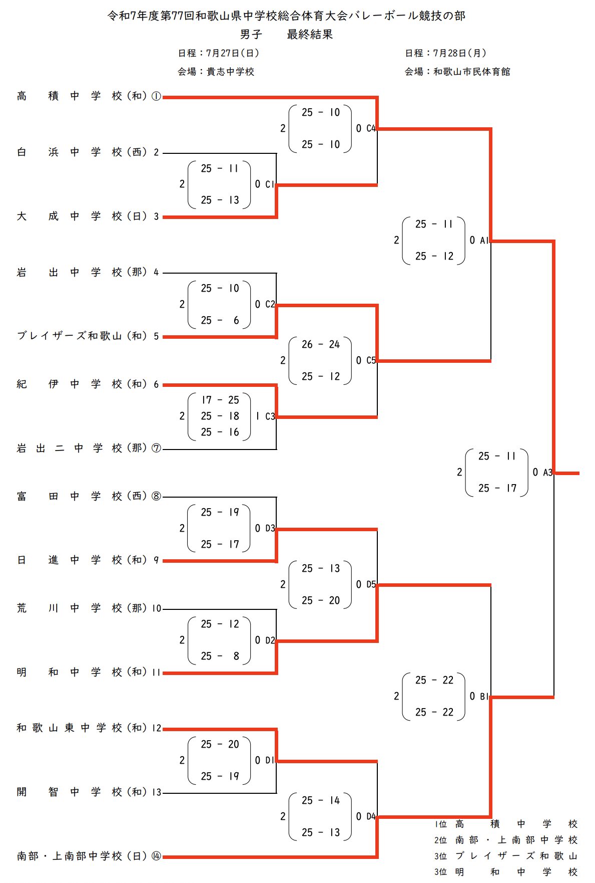 和歌山県で開催されています『令和7年度 第55回全日本中学校バレーボール選手権大会県予選』男子の全ての試合が終了しました。