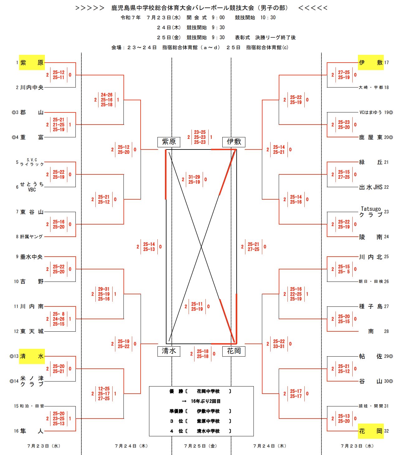 | 紫 原 | 1 | 25-23 23-25 23-25 | 2 | 伊 敷 |