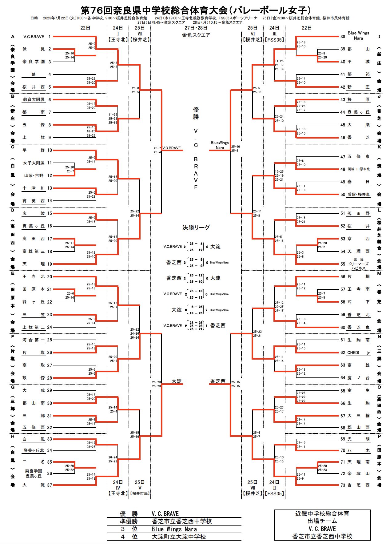 | V.C.BRAVE | 2 | 23-25 25-23 25-21 | 1 | 香芝西 |