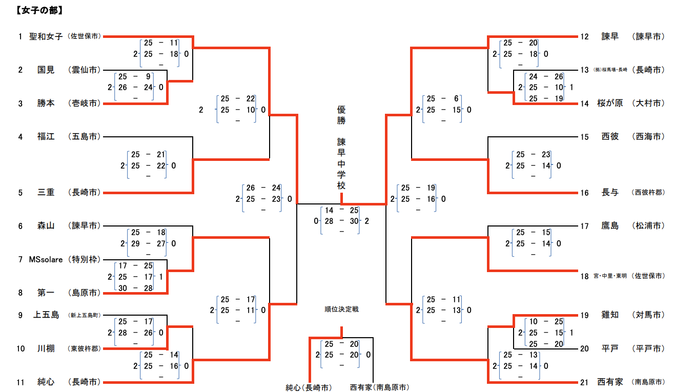 | 諫 早 | 2 | 25-6 25-15 | 0 | 長 与 |