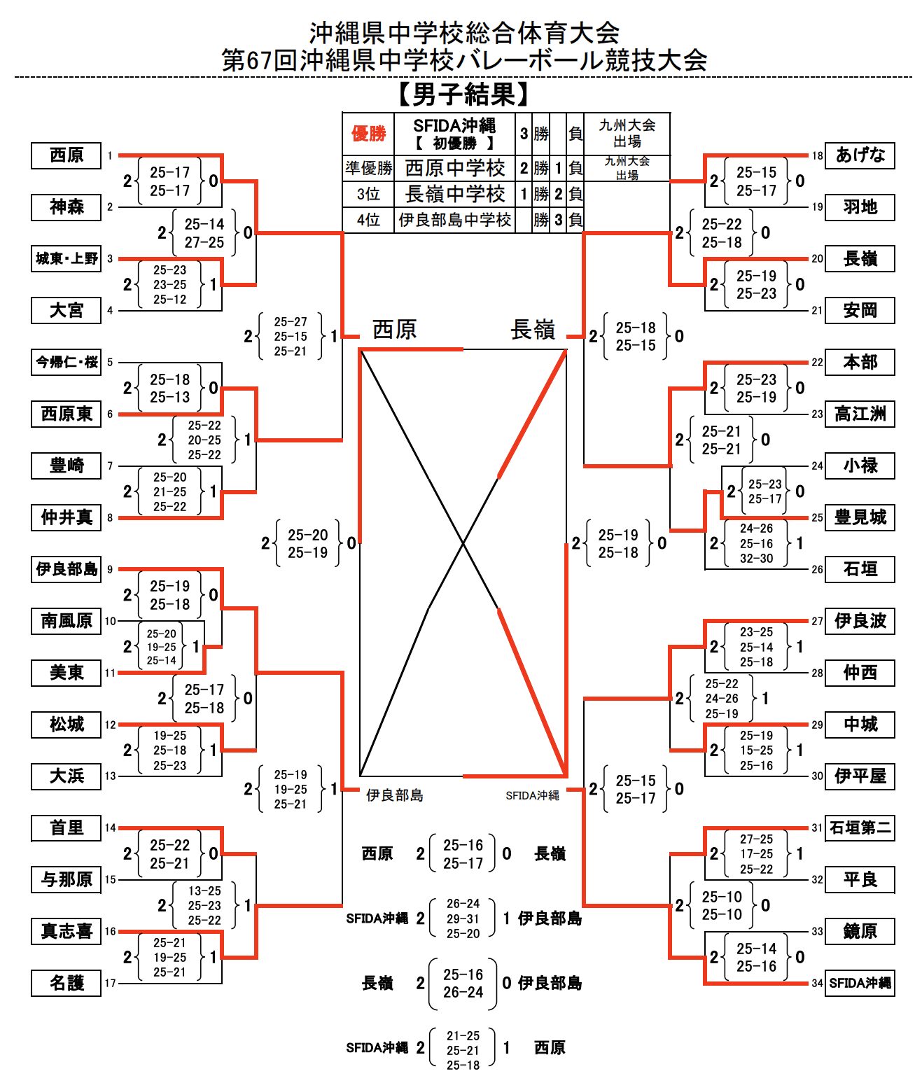 | 西原東 | 2 | 25-22 20-25 25-22 | 1 | 仲井真 |