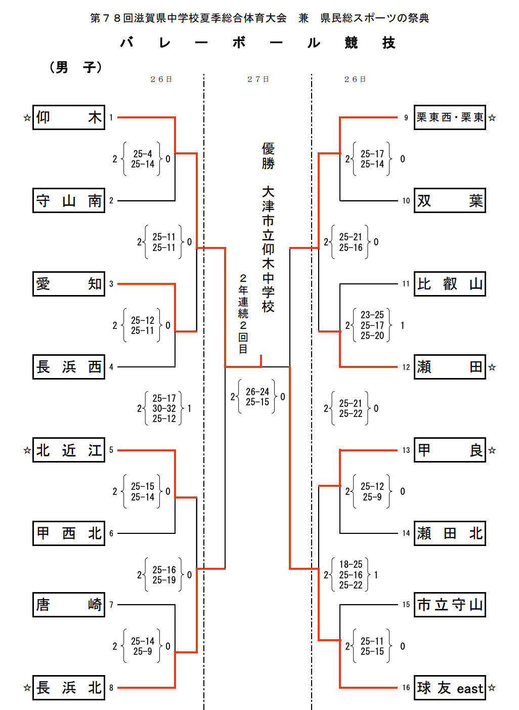 | 仰 木 | 2 | 25-17 30-32 25-12 | 1 | 長浜北 |