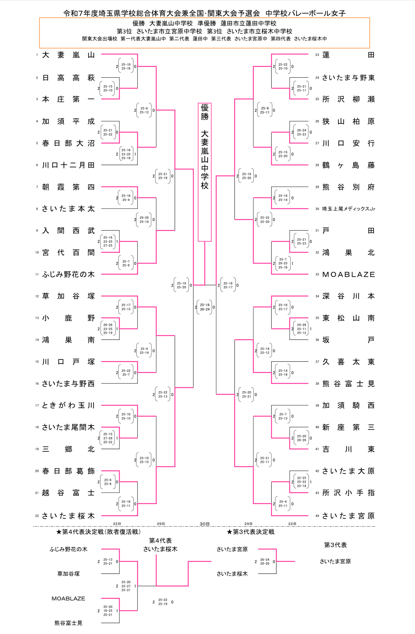 埼玉県で開催されています『令和7年度 第55回全日本中学校バレーボール選手権大会県予選』女子の全ての試合が終了しました。