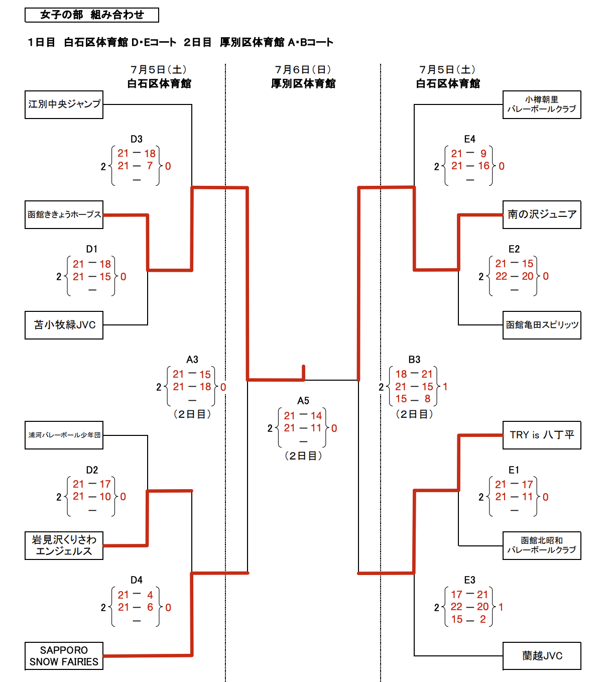 | SAPPORO SNOW FAIRIES | 1 | 15-21 21-18 13-15 | 2 | 北広島北の台JVC |